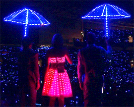Taylor surprised us again with not only the bracelets, but the special effects as well. During "How You Get The Girl" she wore a dress that literally lit up. All the lights turned off and you saw her dress and the movements she was making. The images that were on the big screen were spectacular. You could tell she put in a lot of thought when it came to this tour.