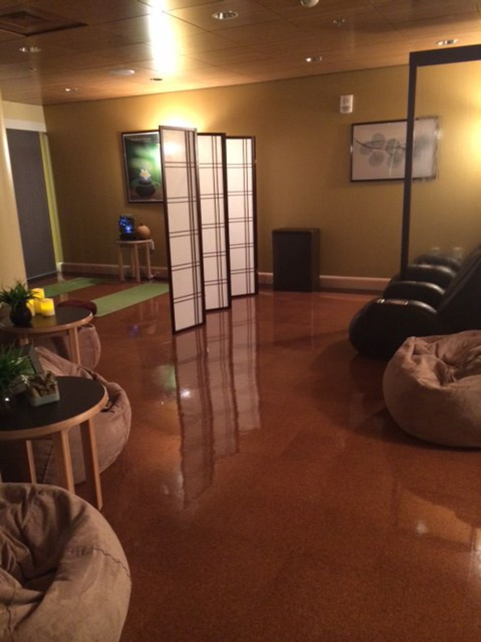 Check out the Oasis on the third floor of SSC. It's a relaxation area for students and comes fully equipped with paint and canvases, as well as massage chairs. Did I mention it's free?