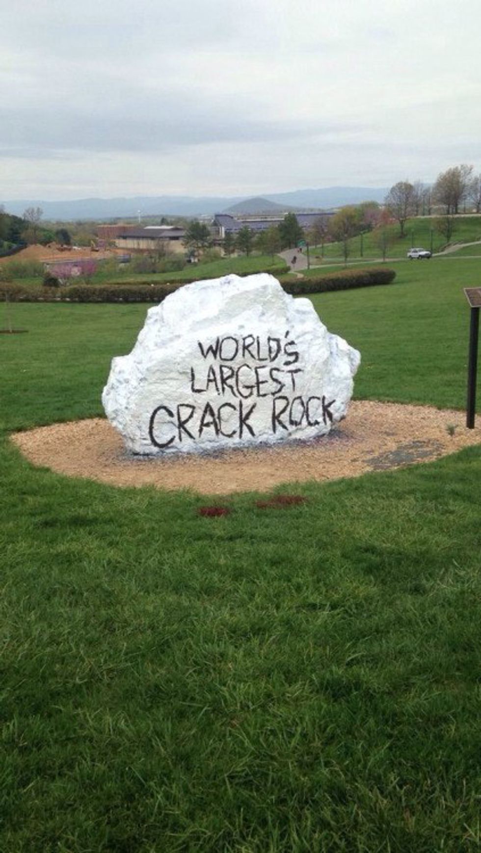 No-one knows quite how it got there, but here it is, the world's largest crack rock. No, we aren't all druggies. Student organizations use this rock to promote campus activities and awareness weeks.