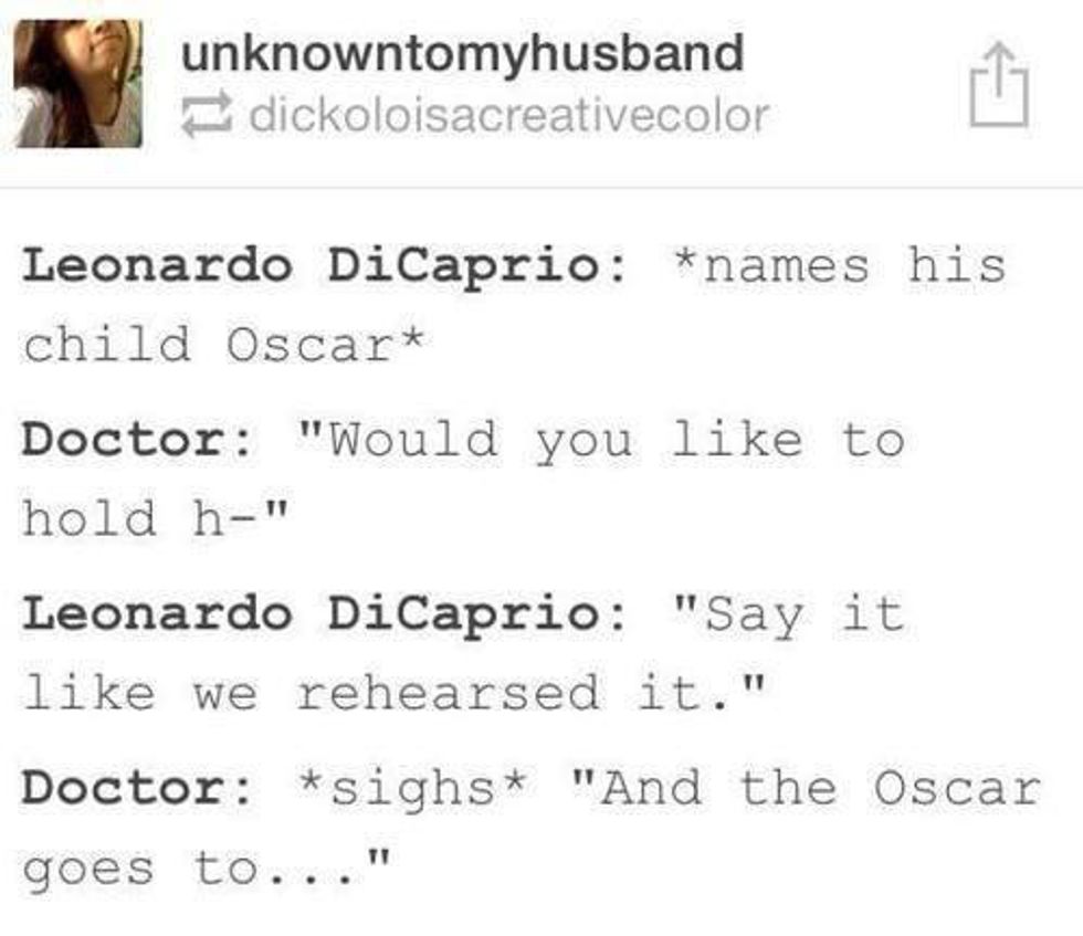 Now that Leonardo DiCaprio has won his inevitable Oscar for Best Actor in "The Revenant" at the 88th Annual Academy Awards, a.k.a. the Oscars, on February 28, 2016, I wanted to compile a list of the funniest Leo Oscar-less jokes and memes that have been created. Especially since he won this past Sunday, we won't really be able to make anymore of them or really circulate them ('cause it's no longer the case).