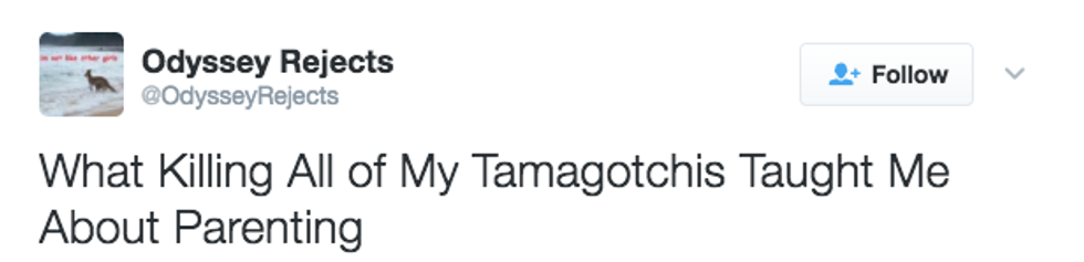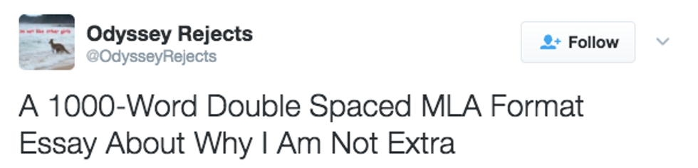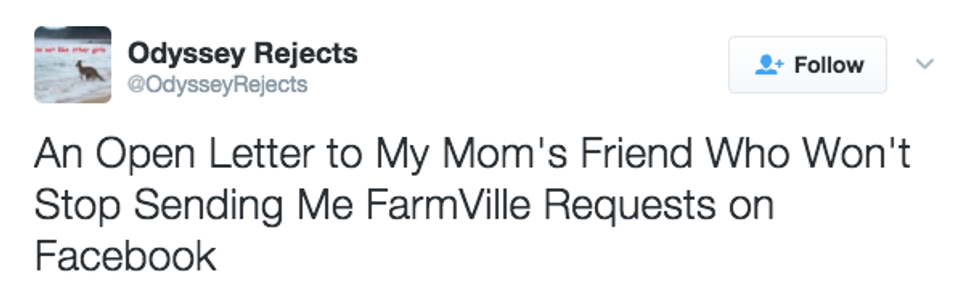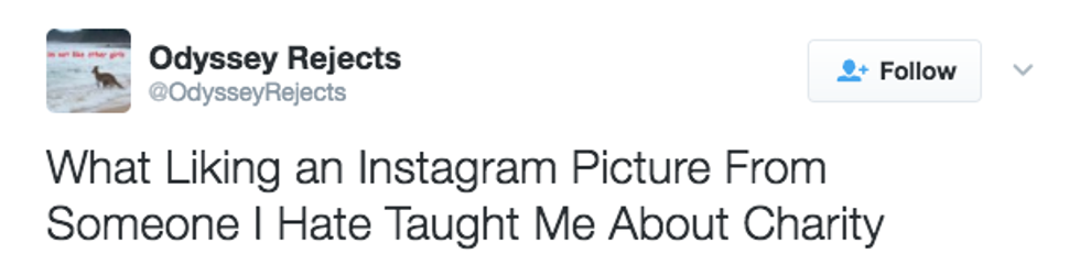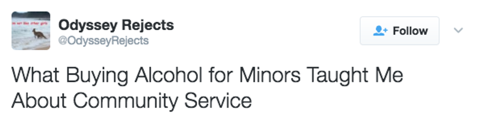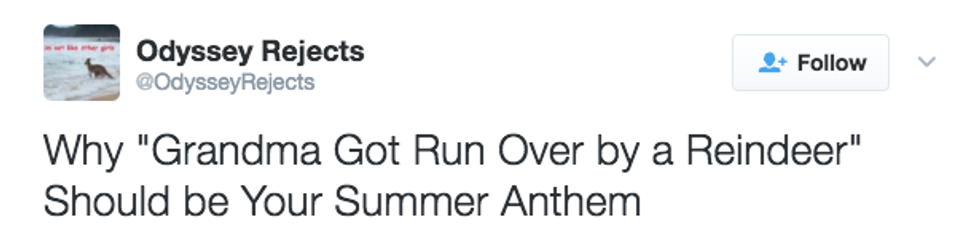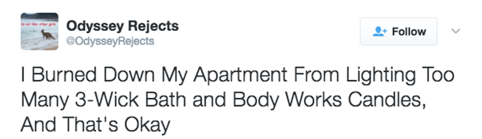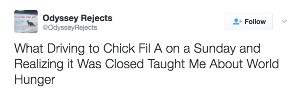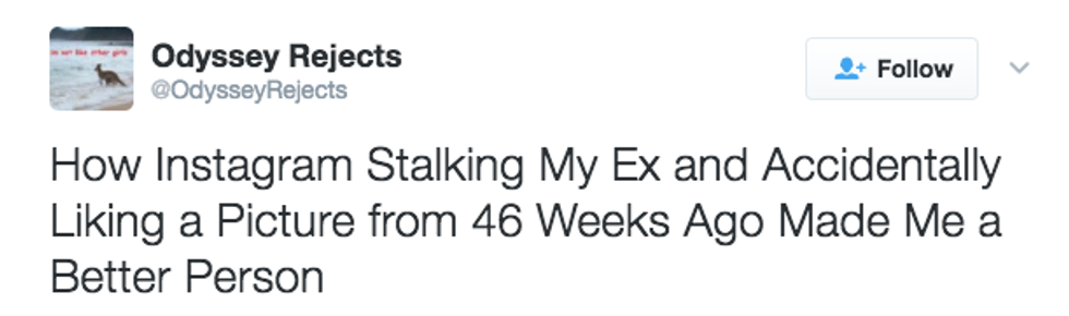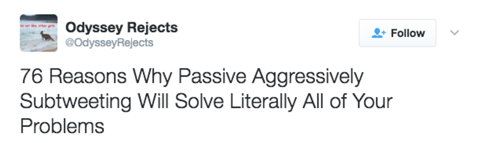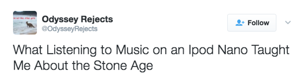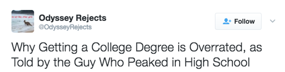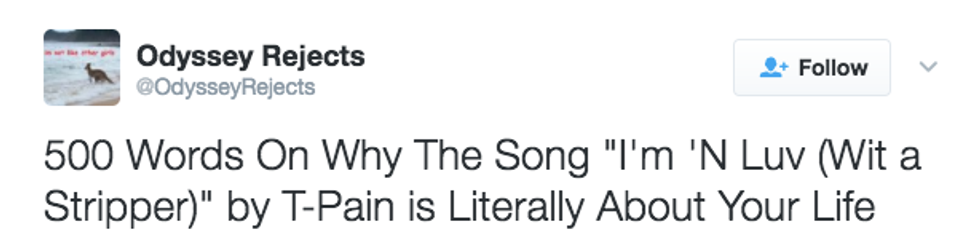 You can't avoid seeing an Odyssey article at least once a month. Whether you're scrolling through Twitter or Facebook (or even Instagram I'm sure) someone you know is sharing one. Although some can be thoughtful and well-written, there are certainly ones that don't really fit that bill. And Twitter user @OdysseyRejects has taken it upon themselves to share ideas that are probably not that far off of ones actually written. As ironic as it is that I'm making this list for Odyssey this account isn't really wrong when it comes to headlines.