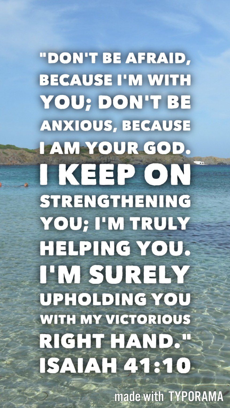 2. “Don't be afraid, because I'm with you; don't be anxious, because I am your God. I keep on strengthening you; I'm truly helping you. I'm surely upholding you with my victorious right hand." Isaiah 41:10 (ISV)