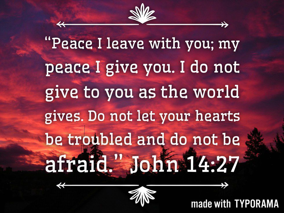 3.“Peace I leave with you; my peace I give you. I do not give to you as the world gives. Do not let your hearts be troubled and do not be afraid.” John 14:27 (NIV)