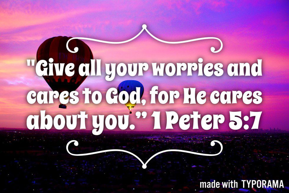 5. “Give all your worries and cares to God, for He cares about you.” 1 Peter 5:7 (NLT)