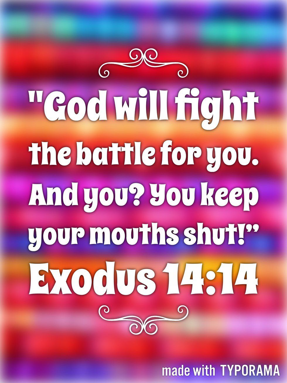 11. “God will fight the battle for you. And you? You keep your mouths shut!” Exodus 14:14 (The Message.)