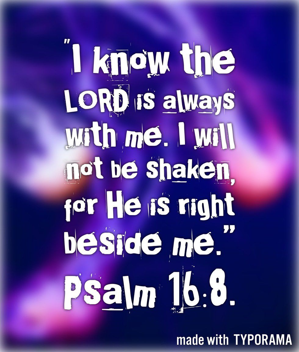 20. “I know the LORD is always with me. I will not be shaken, for He is right beside me.” Psalm 16:8. (NLT)