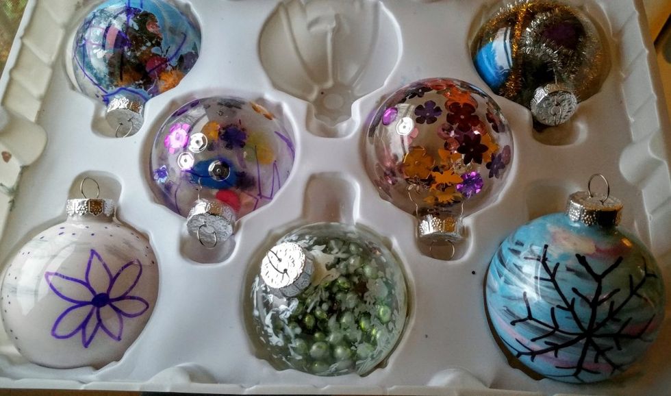 Hobby Lobby and Michaels sells clear, plastic ornaments for a decent price. All you have to do is fill the ornaments with glitter, paint, or whatever else you can find. Before you know it, you'll have your own personal touch on your Christmas tree.