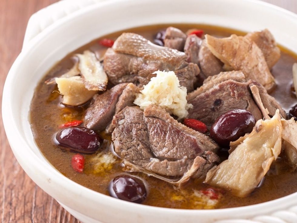Another popular dish in Taiwan in the winter is lamb hot pot. Like the ginger duck, the soup of the lamb hot pot is also boiled with Chinese herb for hours.