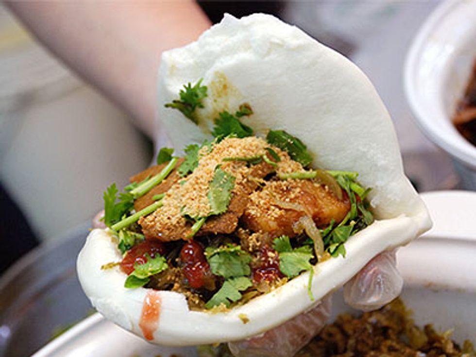Guabao, also known as Taiwanese hamburgers, is a dish that takes pork belly, cilantro, and peanut powder to wrap inside of a bun.