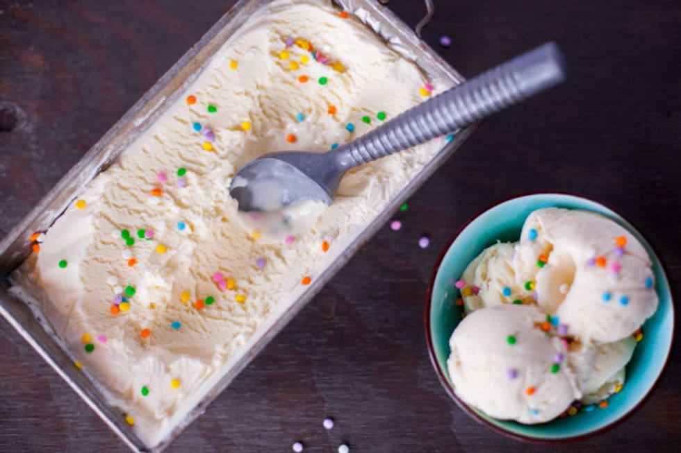 Have you ever gone to a birthday party with cake and ice cream? Well, birthday cake ice cream (sometimes called party cake) gives you 2 for the price of 1. Its sugary icing flavor sure gives you the feeling of fun, happiness, and cheer. Super sweet!