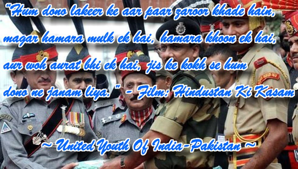 “Sarhad ke uss taraf ki zameen aur iss taraf ki zameen ek hi hain...aur yeh zameen paani maangti hai, khoon nahin maangti.”