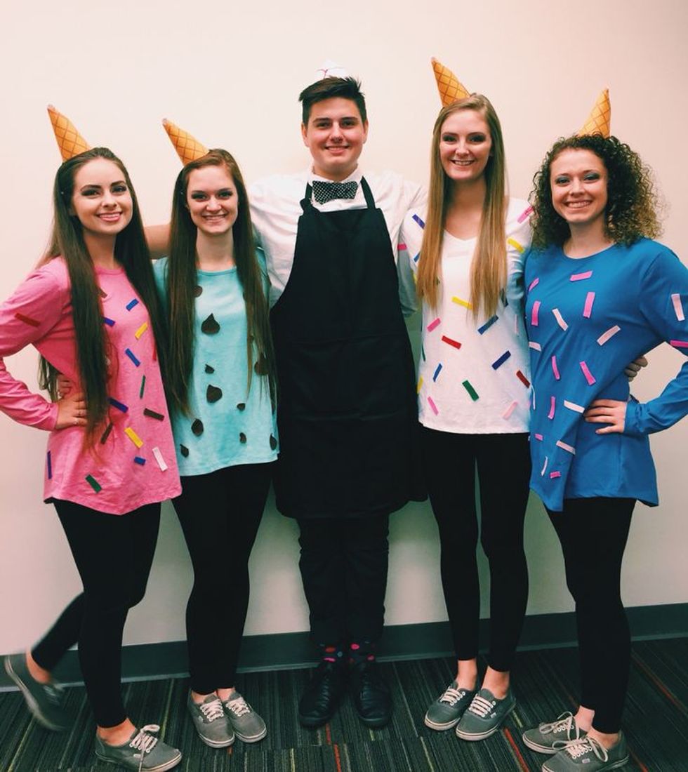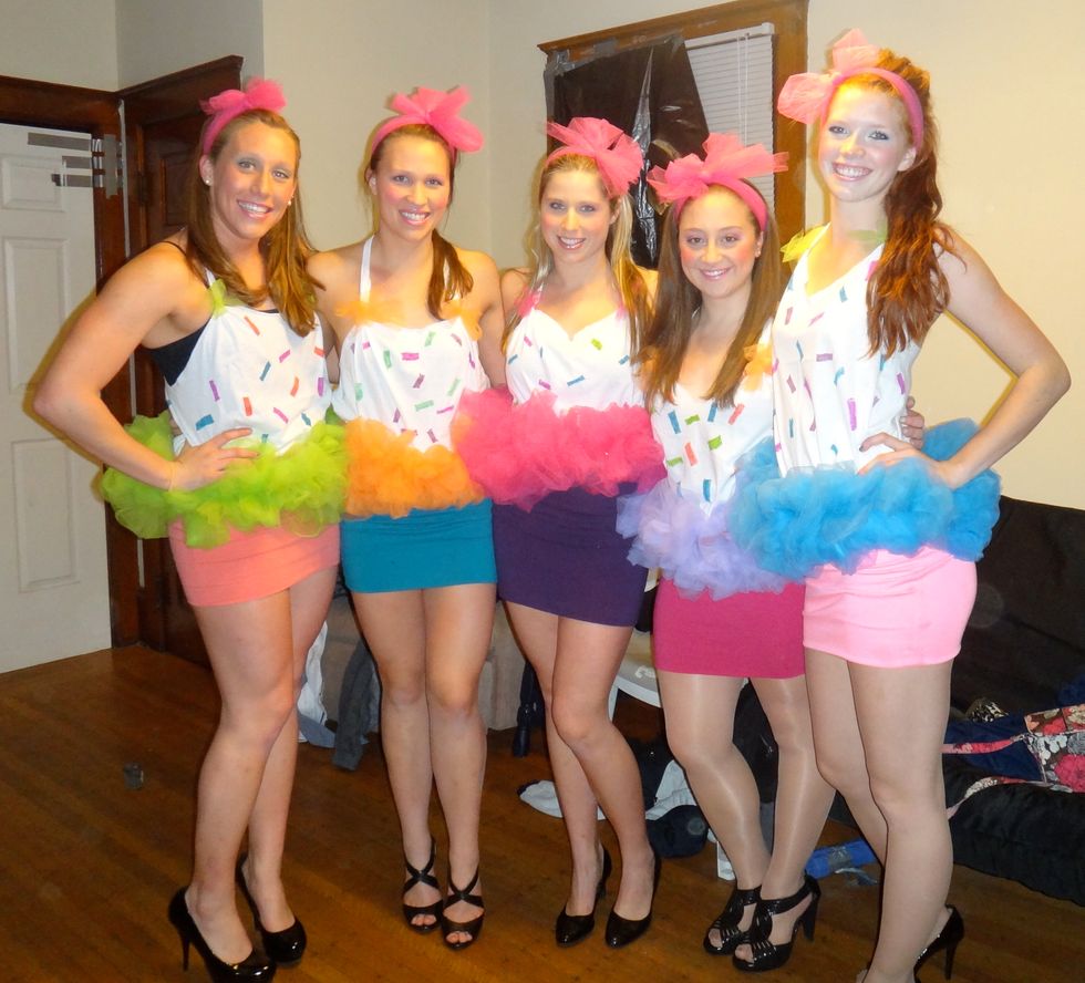 Again, this one is less intimidating than it seems. A white tank top, some felt or Sharpies and fabric glue, and a tutu from Party City with a fun colored skirt and you’re ready. Mix and match with your friends create a rainbow of flavors.