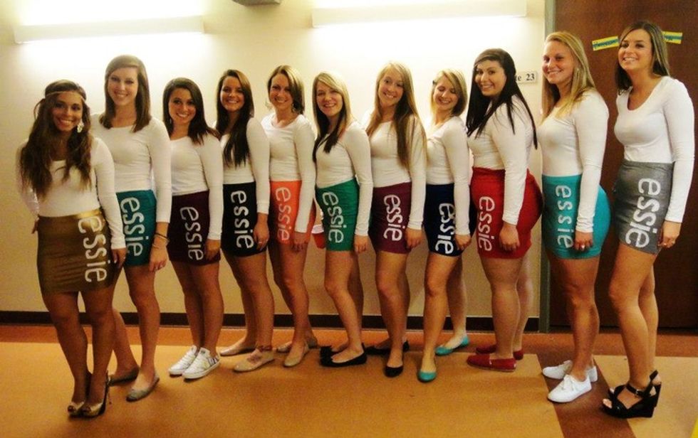 This is one of my favorites because literally, anything goes. Two people or ten people, the idea still works. A white t-shirt, a fun colored skirt, and a white fabric Sharpie make your whole costume! Make sure you and your friend don’t go as the same color! Make fun names for your shades and write them...wherever you like.