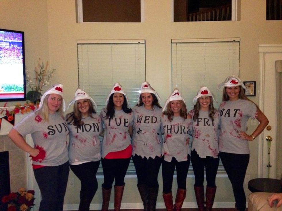 This was hilarious to me. I definitely give it an A+. Some grey t-shirts, felt, glue and Sharpies and you have yourself a sweet group costume. Because everyone knows Shark Week should be considered a national holiday.