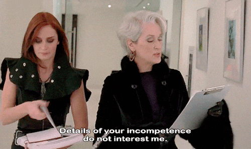 "The Devil Wears Prada" is a movie that inspires millions every day; just by watching this movie I was able to learn that sometimes the meanest person in your life can teach you the most important lessons needed to be known. So Meranda Priestly (Meryl Streep) is not the nicest person in the world, but she shouldn't be. In her field if success is your goal, you must keep a straight face and work your way too the top. In a world dominated by men you must keep a poker face no one is going too hold your hand and help you out all of the time; sometimes you must figure things out on your own and show people that you are the HBIC.