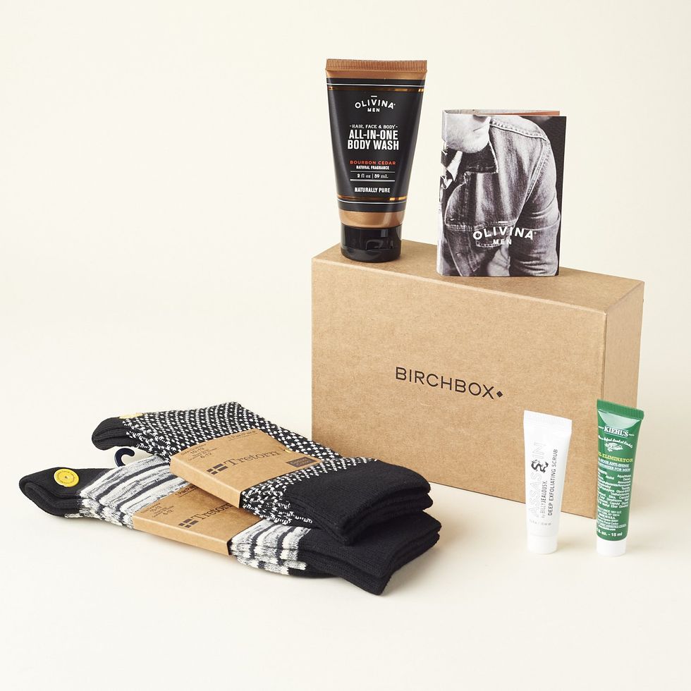 Same as the women, but products for men. You’ll receive a variety of grooming items to keep you looking good.