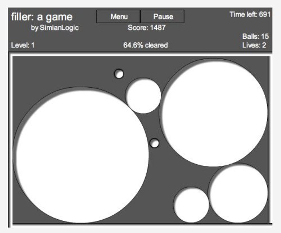 This game is pretty addicting and harder to win than it sounds. The goal is to fill up 2/3 of the screen area with the filler balls, that you create by holding down the mouse, while avoiding them being popped by the bouncy balls that are flying around the screen. You have a limited number of lives and filler balls each round. If you’re strategic enough you can make the filler balls huge and trap the bouncy balls between or beneath them, making it easier to beat the round. I was able to make it to Level 11 using this strategy before I lost.