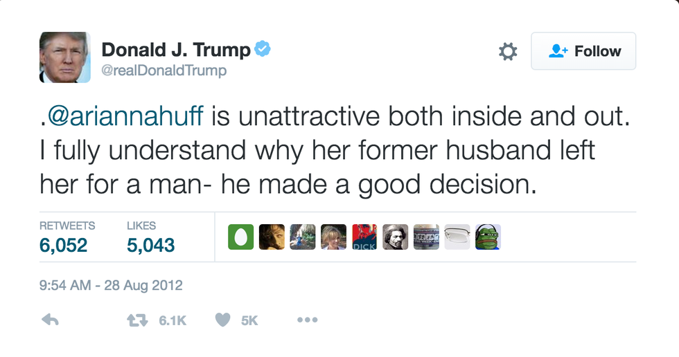 In the heat of probably the most interesting election in history, we are faced with two controversial candidates. However, it is blatantly clear that one is unfit for the Presidency and I'm sure you can guess who that is. Yes, Mr. Donald Trump. From his racism and bigotry to the fact that he has no prior experience as a politician one must wonder why half the country seems to think he would be a good fit for President. What is even more shocking is his unfiltered opinion on women. Here are some horrific examples...