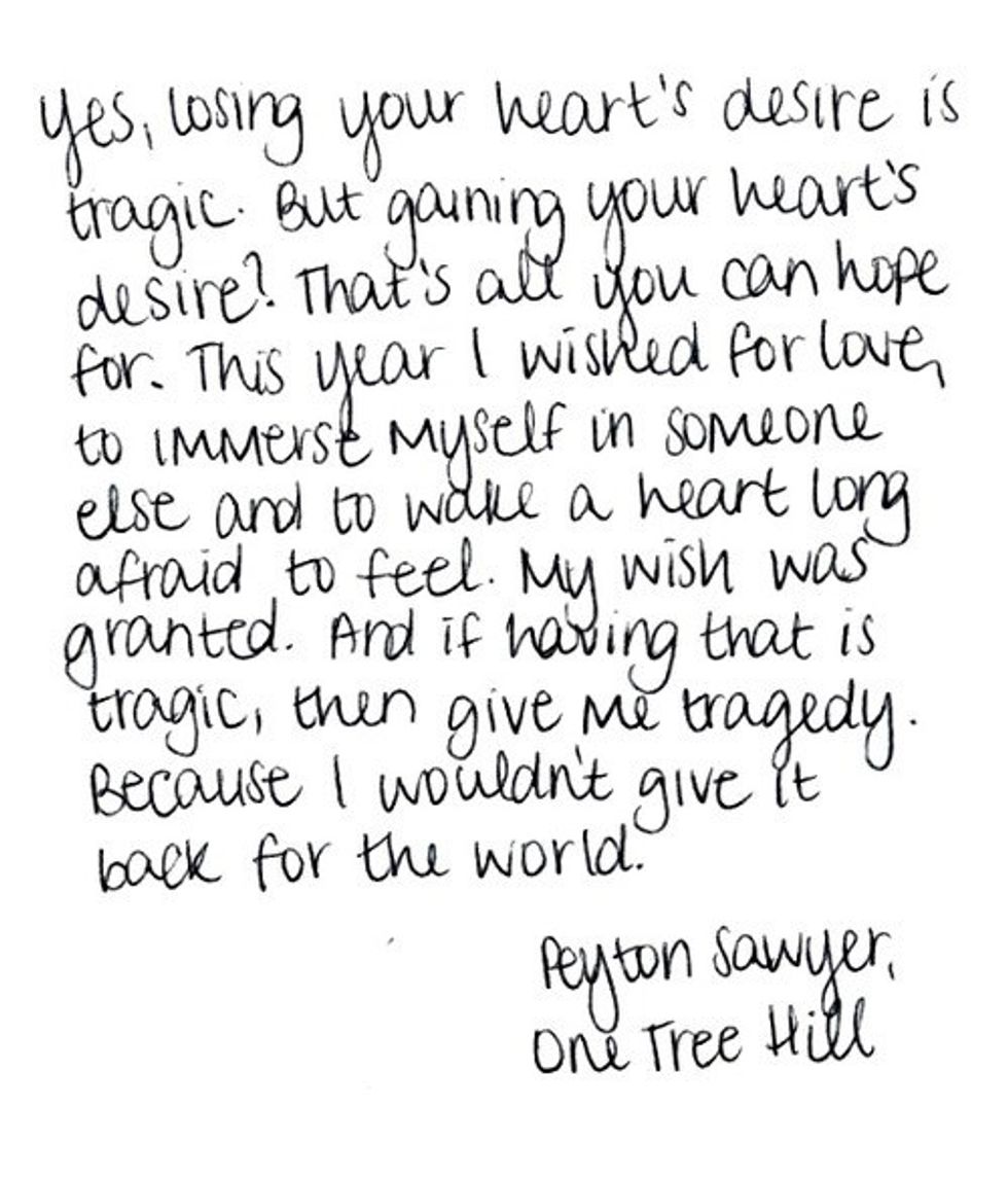 The opening lines of the "One Tree Hill" theme song alone make me emotional: I don't want to be anything other than what I've been tryna be latelyyyy... Let's be honest—the entire series made me emotional. It's borderline embarrassing to admit how many times "One Tree Hill" made me sob like a baby. Even if at times "One Tree Hill" seemed completely unrealistic—that dog eating Dan's would-be heart, COME ON—it still managed to be one of the most relatable shows I have ever seen. Nine seasons, 187 episodes, and an infinite number of quotable moments, here are 20 "One Tree Hill" quotes you need to hear right now.