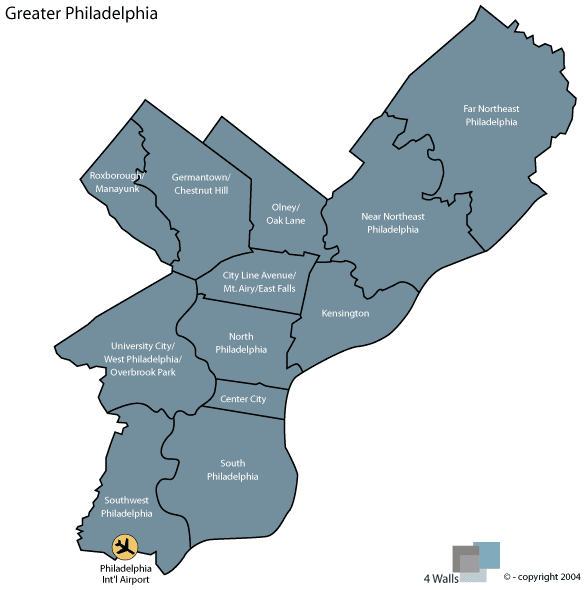 Philadelphia covers the 215/267 area code and is 1,799.5 square miles of urban land. However, this does not include the surrounding suburbs. People from Philly often look down on those from the surrounding suburbs. Guess our egos are pretty big!