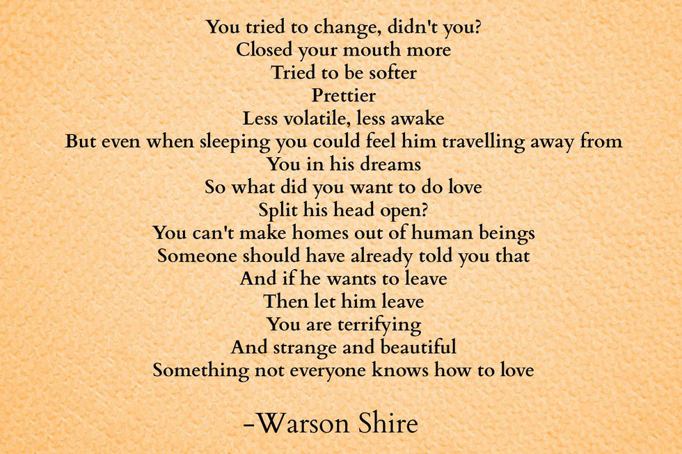 "All my flowers grew back as thorns. Windows boarded up after the storm. He built a fire just to keep me warm."