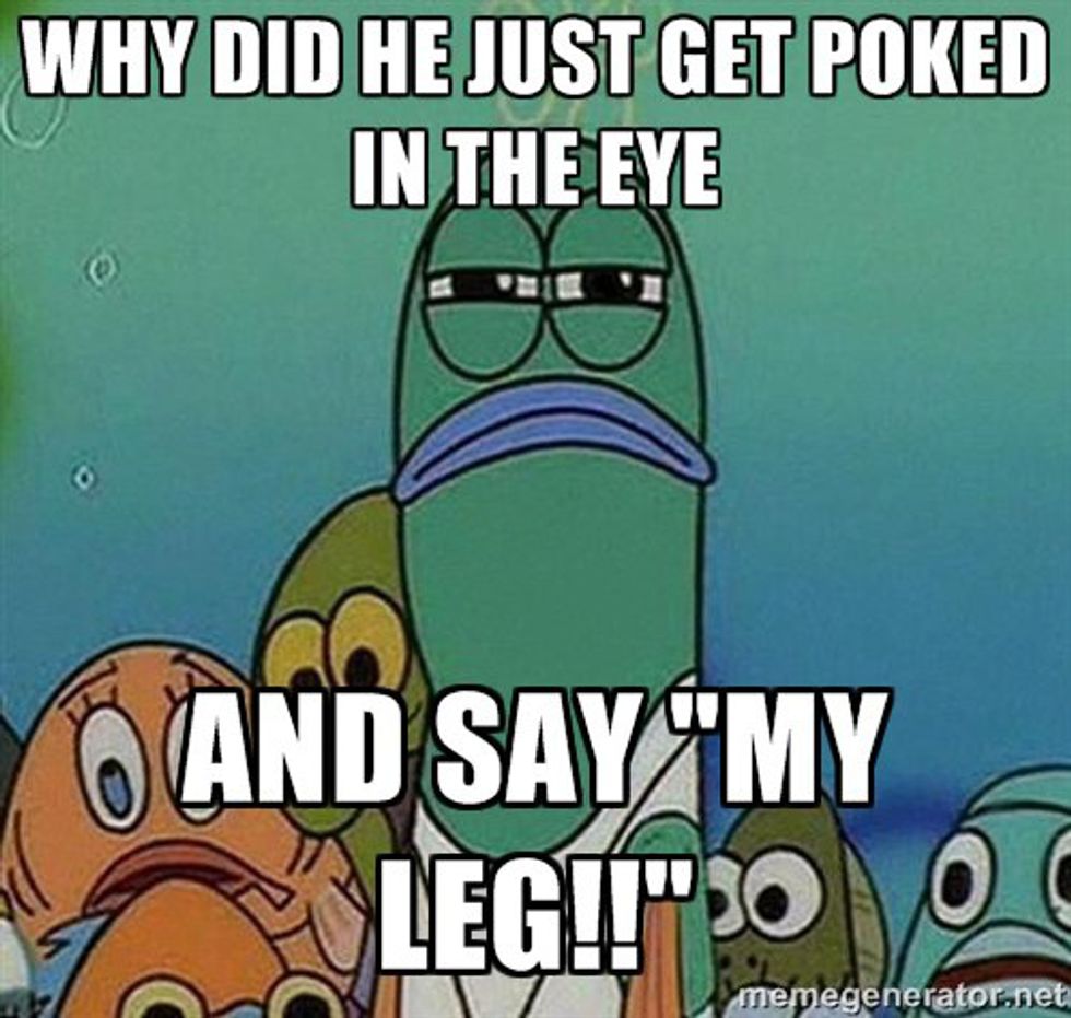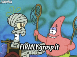 14. *Patrick trying to teach Squidward how to hold a jelly fishing net, but he is in a full body cast* Patrick: Firmly grasp it, firmly grasp it, firmly grasp it!