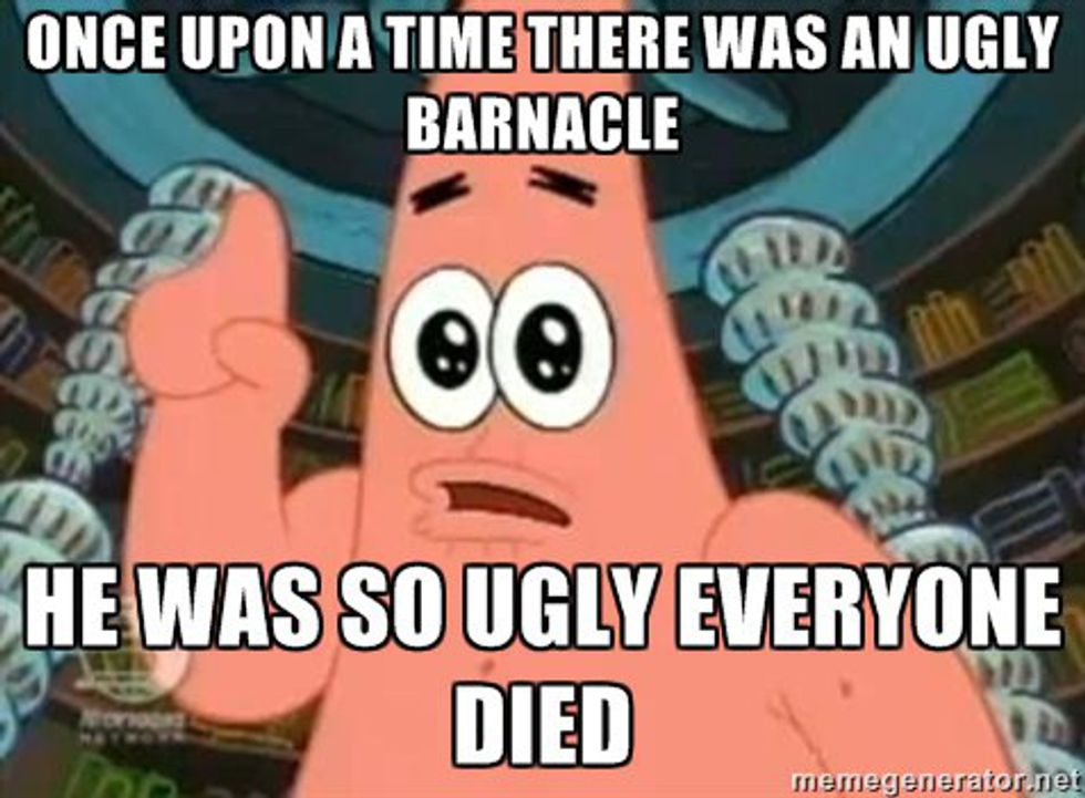 4. Patrick: Once there was an ugly barnacle, he was so ugly that everyone died. The End!