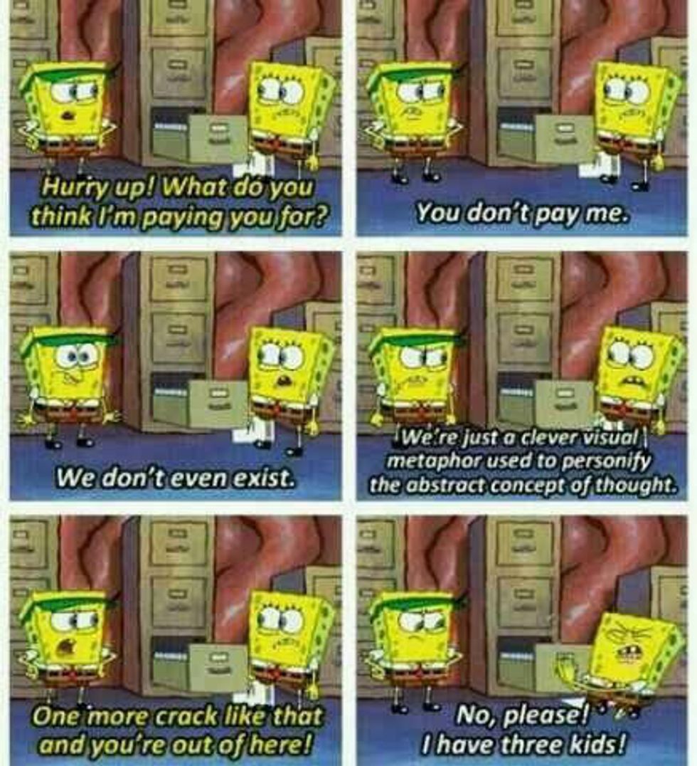 16. Spongebob: Squidward, that’s not a peace treaty, that’s a copy of the peace treaty.