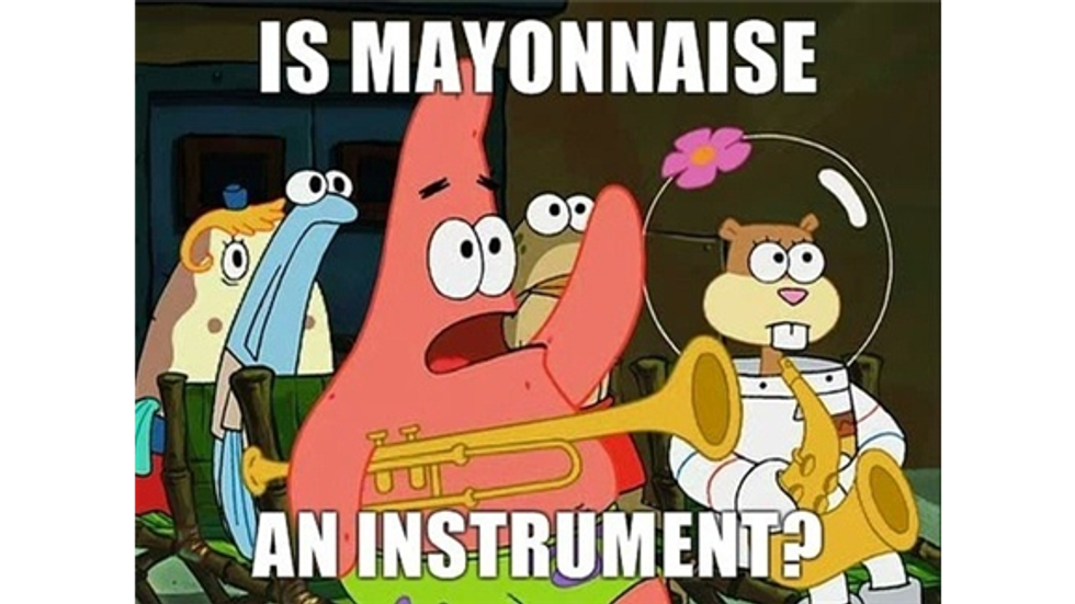 1. Patrick: Is mayonnaise an instrument? Squidward: No Patrick mayonnaise is not an instrument. *Patrick raises hand* Squidward: Horseradish is not an instrument either.