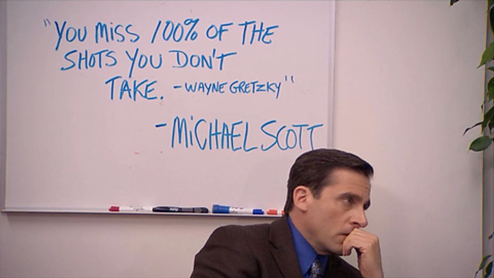 Michael Scott is full of wisdom. Remember that he wants you to try on your finals and not miss an opportunity to take a shot.