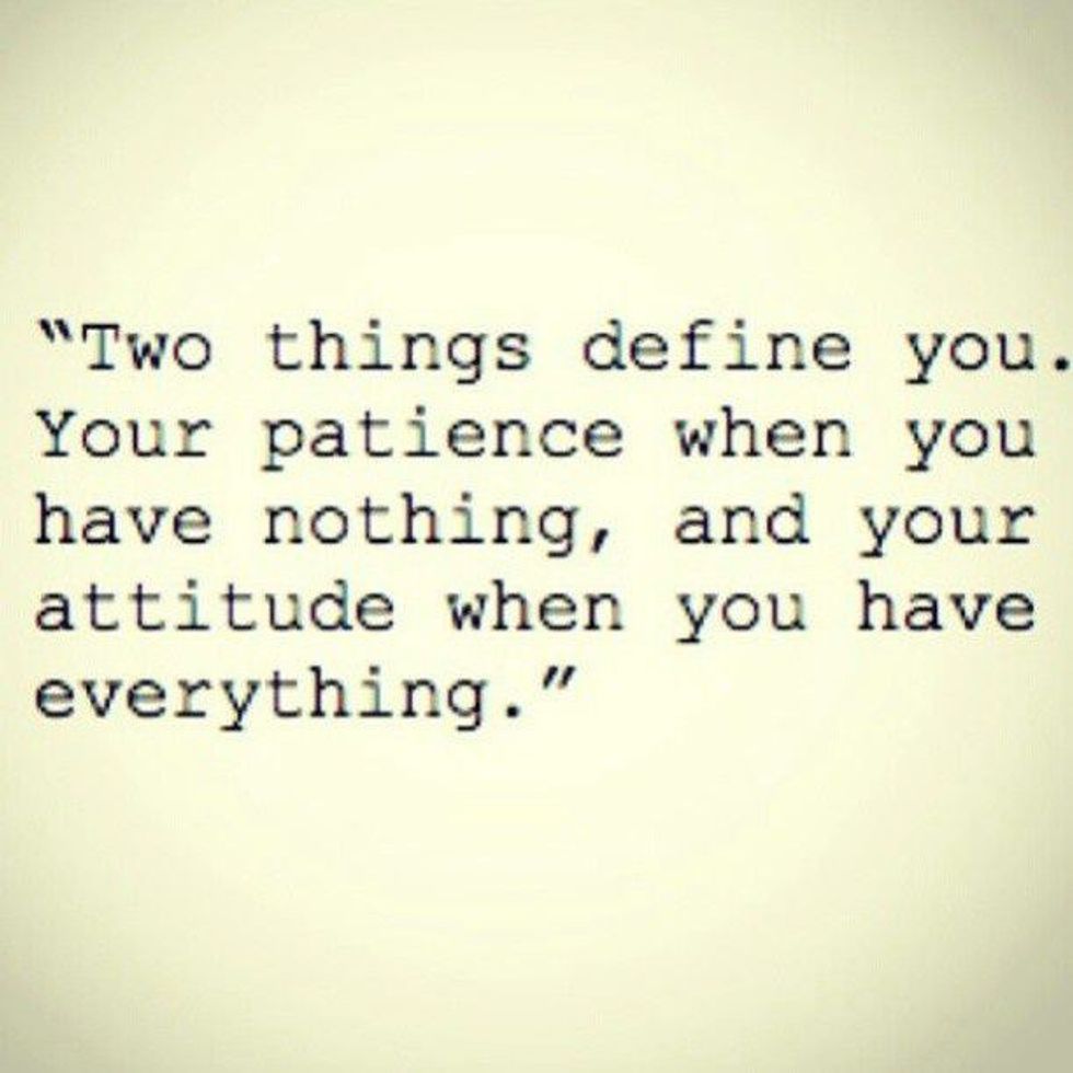 Patience is key. I strongly believe that good things come to those who wait. And when those good things finally do come and you have everything you've ever wanted, be humble. Your attitude can depict your behavior and can influence other people's opinions of you. How you present yourself defines who you are. Everyone who has it all now once started with nothing. Keep that in mind.