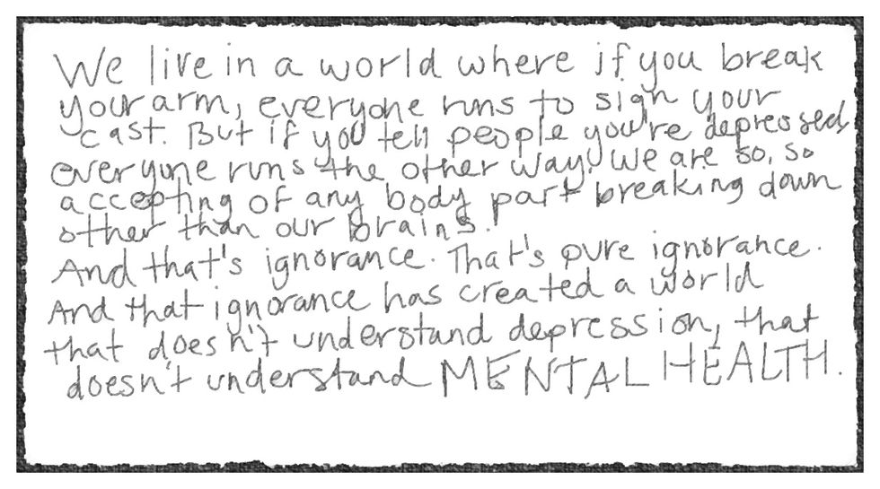 After my article, one of those people that reached out to me was a friend I hadn't spoken to in years, aside from social media. They were the perfect example of someone who has had to suffer silently. On the outside, this person seemed perfectly happy with their life, their marriage, their kids. It wasn't until this person confided in me about their own personal struggles with their mental disease that I could even fathom the pain they were hiding. Everything they spoke about is the very reason I am so open with my own struggles. They felt like they weren't being heard by certain loved ones, or others in their lives. Too much was expected of them because of the "good days". They felt like a burden. And the biggest thing they wanted was just to be heard, listened to, and believed.