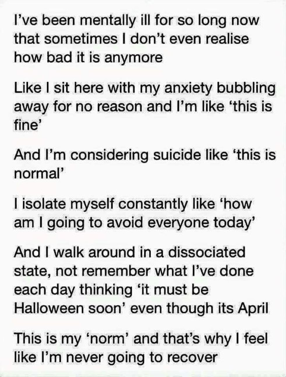 Wrong again. You do, but society attaches a stigma and ignorance to many mental illnesses. This makes that person hesitant to share with anyone who doesn't also suffer with a mental illness.