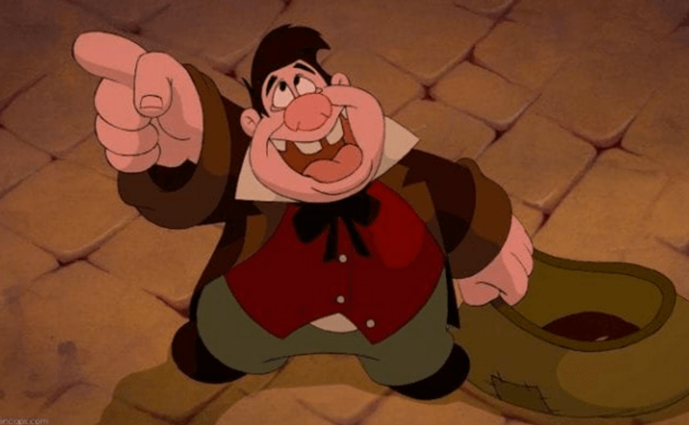 9) His entire role in the movie is to be evil and cosmic relief, as well as feeding Gaston’s ego.