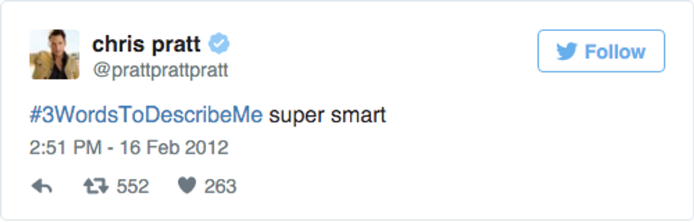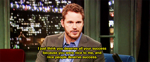 Like dayum. The man is pure genius. He's funny, a great actor and he's kind of good-looking. Only kind of though. Oh, who am I kidding? Have you seen "Jurassic World"? The man is on fire. From Andy Dwyer to Star-Lord, Chris Pratt has captured people's hearts all over the world. While I could sit here and give you a million reasons to love Chris Pratt, I think I'll show you. With gifs. Everyone loves gifs.