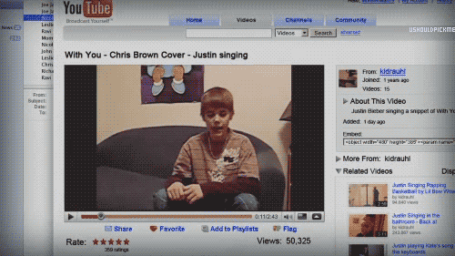 Justin's original YouTube videos are so adorable with his classic Bieber hair and his soulful vocals, which show his natural talent.