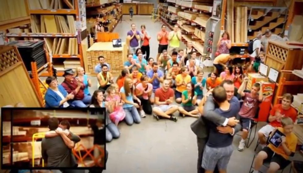 This man walked into Home Depot thinking he was helping his roommate pick out lighting fixtures when he was taken to the lumber section and watched as his friends and family performed a flashmob to "Somebody Loves You" by Betty Who. His boyfriend then got down on one knee and proposed. The answer was obviously yes.4. Lily's Disneyland surprise.