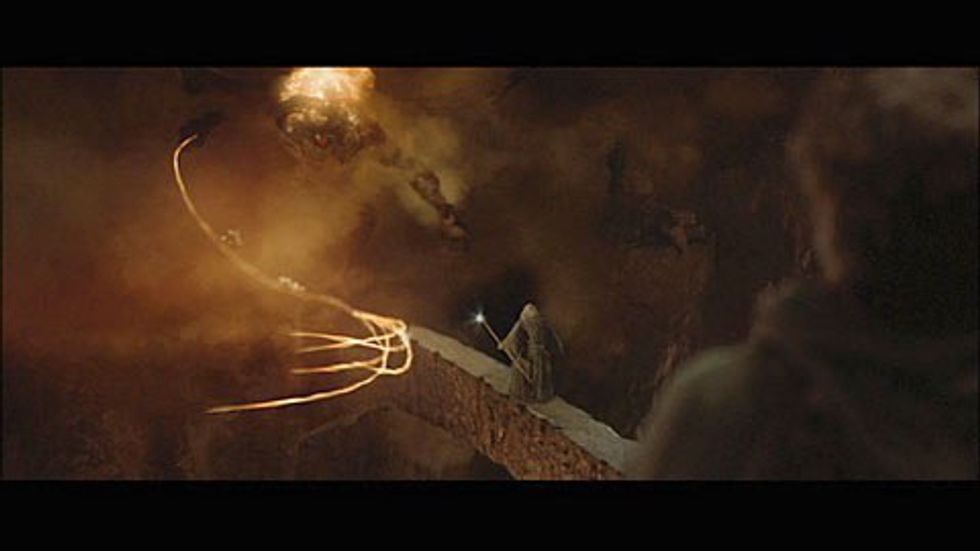 There are many awesome battle sequences in the quest to save Middle Earth. The best by far is the battle at Helm's Deep in the Two Towers. It is a super intense experience that takes a good chunk of the movie, and the best part is how it's won. The men of Rohan nearly lose their stronghold, even after having an army of elves that come prepared to help right before the battle begins. The orcs have them overrun and have forced them back into the mountain. And after a long night, Gandalf brings the Rohirrim as the sun rises to save them!
