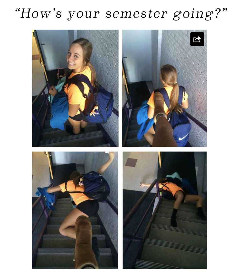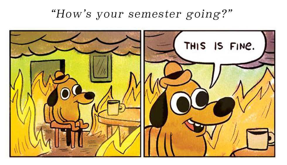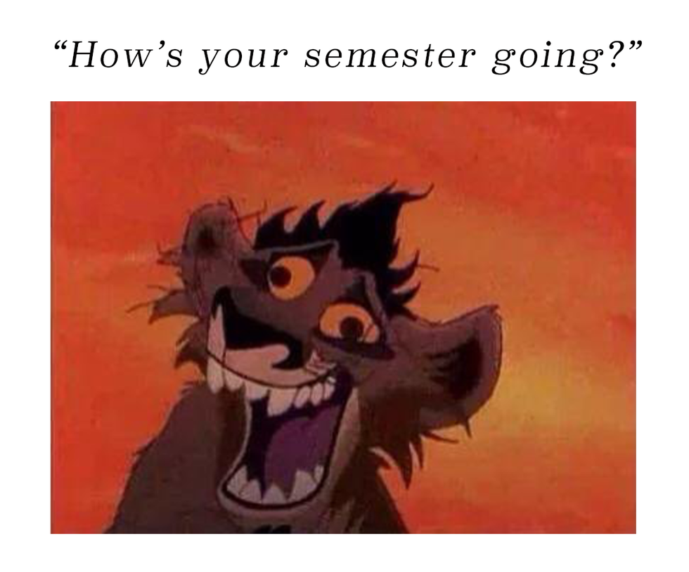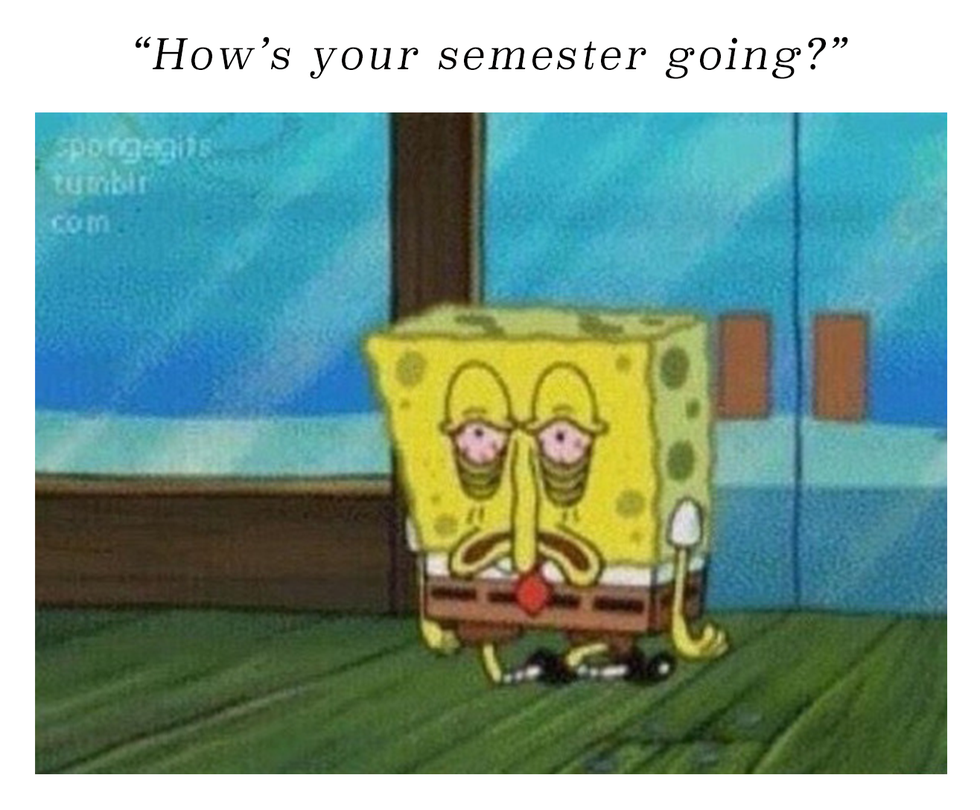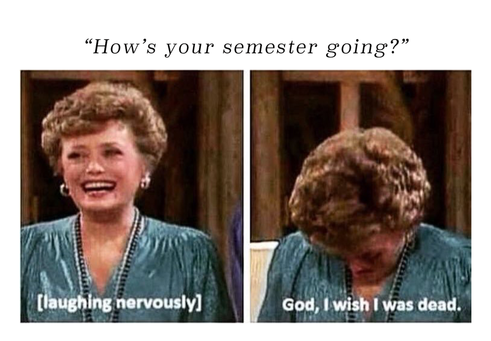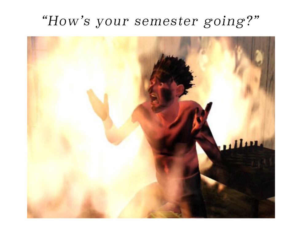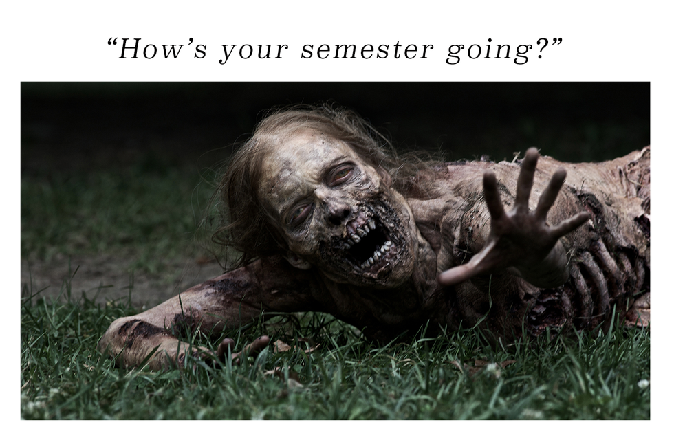 It's the time where we start sharing, retweeting and favoriting all those tweets and articles that relate the most to us struggling "end of the semester" college students. Weirdly, this time of the year seems to come earlier every year. It seems like you have no time in the day to do anything but school work, and when you do have time for a breather it's spent worrying about upcoming assignments or the fact that you have to be missing an assignment because there is no way you actually have this so called, "free time."