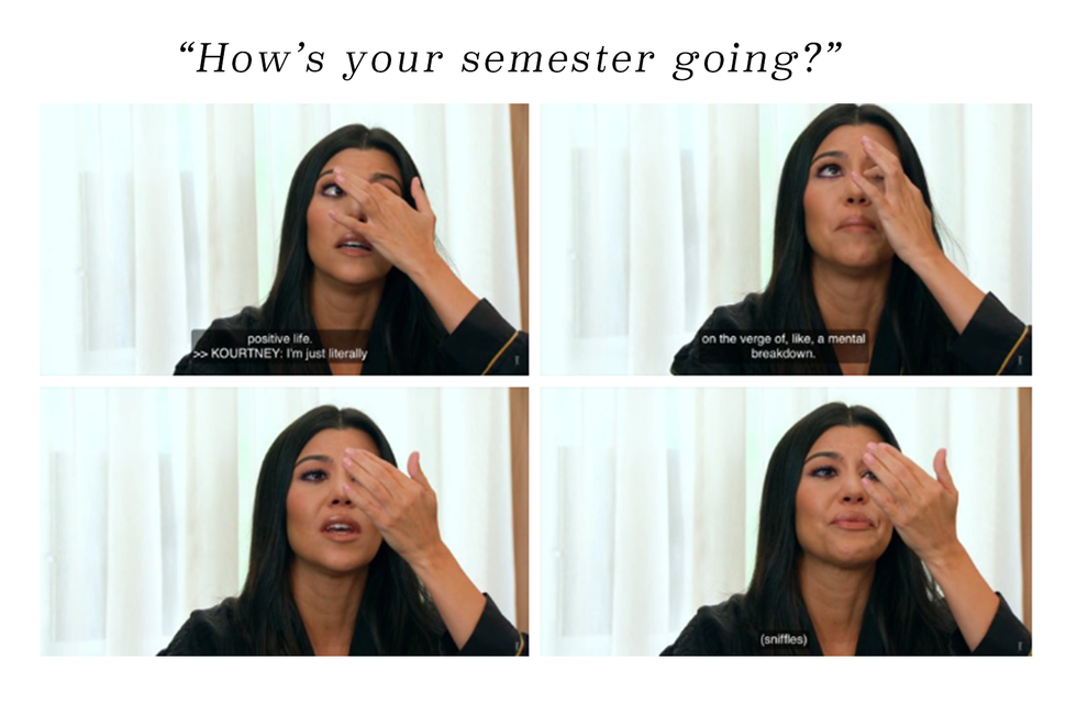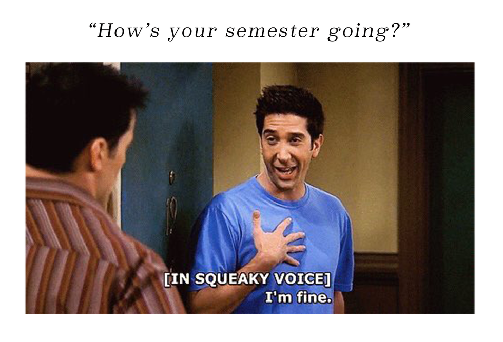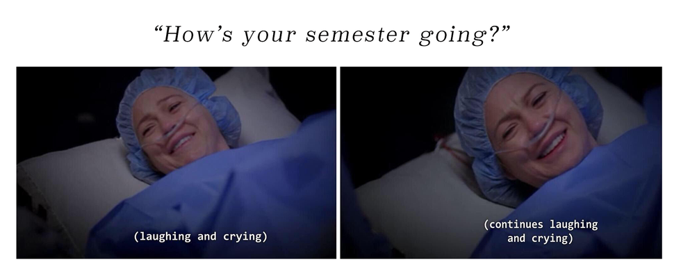 The one thing we are all sure of is that we don't have time to fully respond to the people who are asking how we are doing. Don't get me wrong, we appreciate and love everyone who checks up on us, we really do, because statistically college students are as stressed out and have the same levels of anxiety as a psychiatric patient did in the 1950s... but we can't write everything that we are feeling and not have a mental breakdown.
