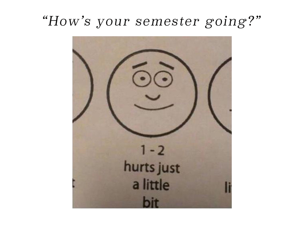 Pick your favorite and send it, or send the whole thing. Depending on your major... you may be feeling every one of these.