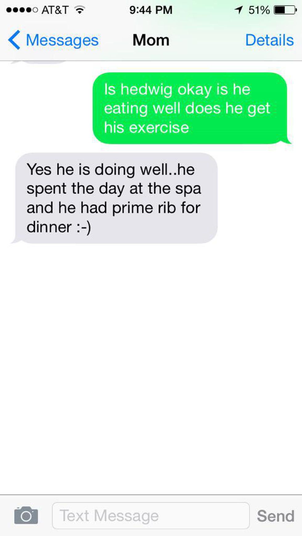 14. Your mom is used to getting texts like this and plays along.