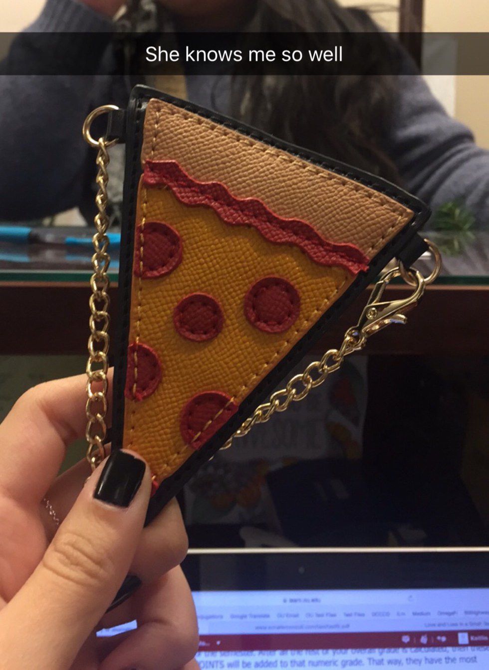 7. You've been gifted something that resembles pizza - such as a keychain or a pillow.