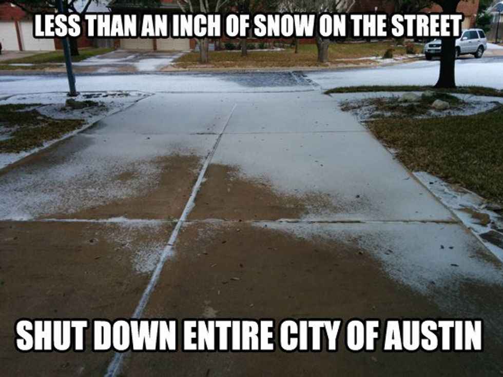In state's, other than Texas, the weather can be so dangerous and freezing that school will not get canceled. But weirdly, in Texas, if there is just a little bit of ice on the road, you know that school will get canceled for the "snow day."