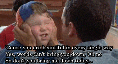 "I am beautiful / no matter what they say / words cant bring me down / I am beautiful / in every single way / yes words cant bring me down / oh no / so don't you bring me down / today."