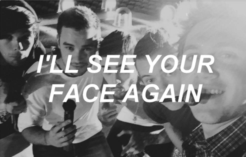 "We had some good times, didn't we? / we wore our hearts out on our sleeve / goodbyes are bittersweet / but it's not the end / i'll see your face / again.""Walking In The Wind" - One Direction