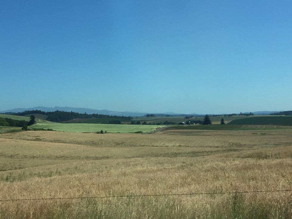 The hills. The farms. The trees. The bright blue sky. The city is great and all but there's something about how calm and refreshing the country side of Oregon is.
