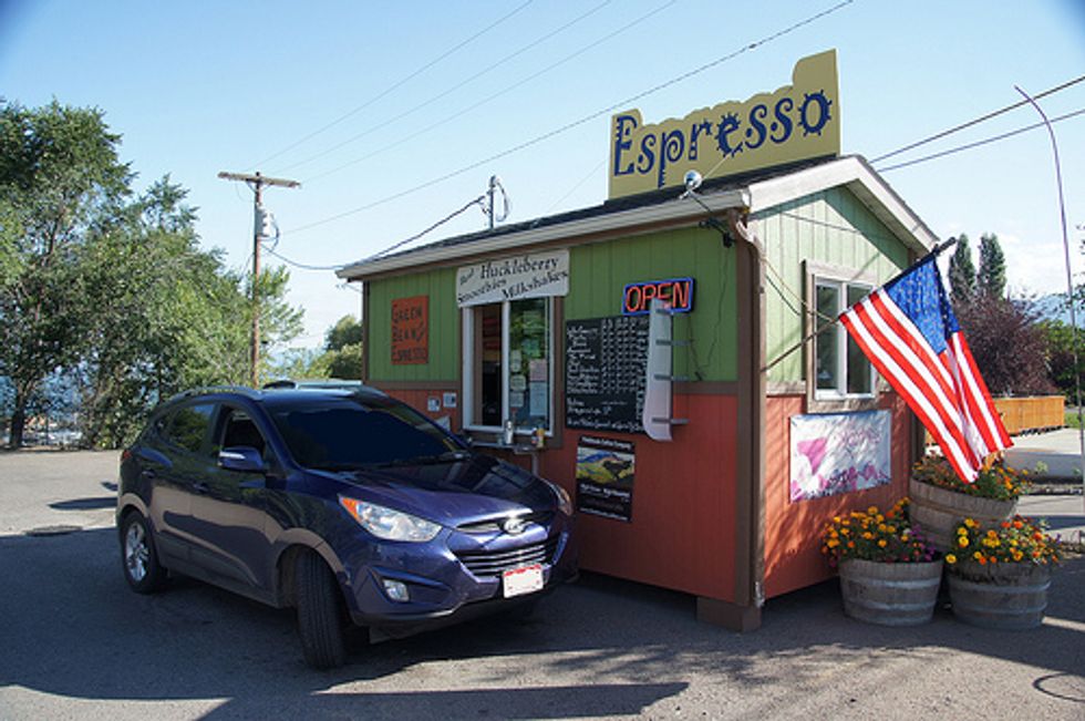 Yesss! Who doesn't love a good cup of coffee with out the huge line? I knew these people were crazy about their coffee but to have many, many, many coffee/espresso businesses, such as this one below, all over, blows my mind. It's quite impressive and I think I may need to invest in one at home.
