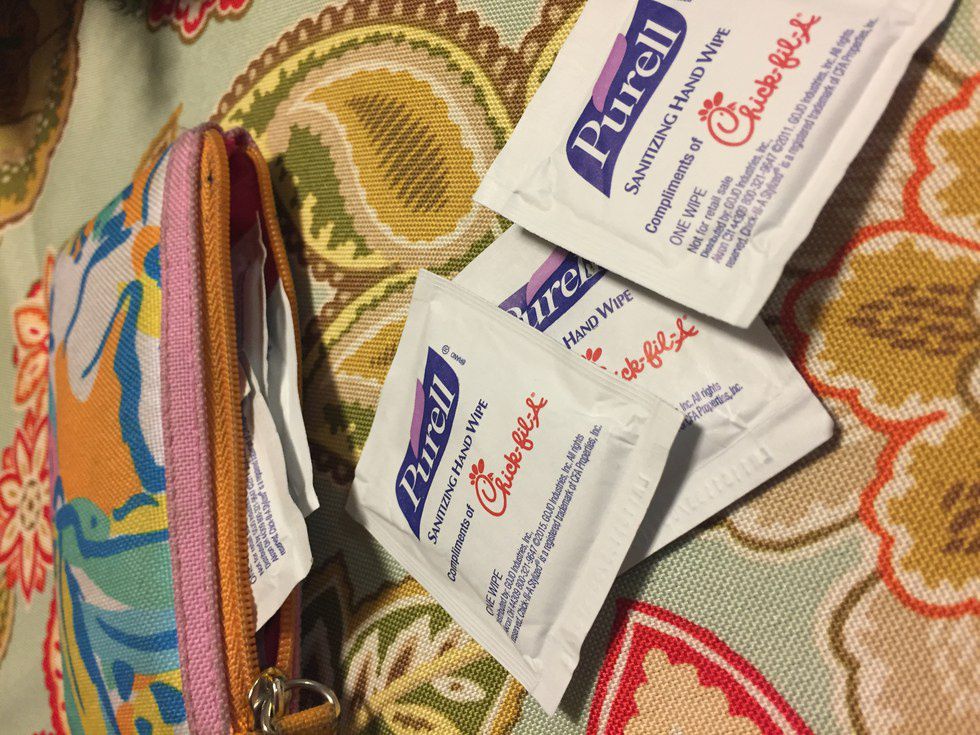 Yes, I am that person. I use wet wipes before I eat and after I eat. I will give it to you if we are eating together. And yes, those are from Chick-fil-a. Don't judge me.