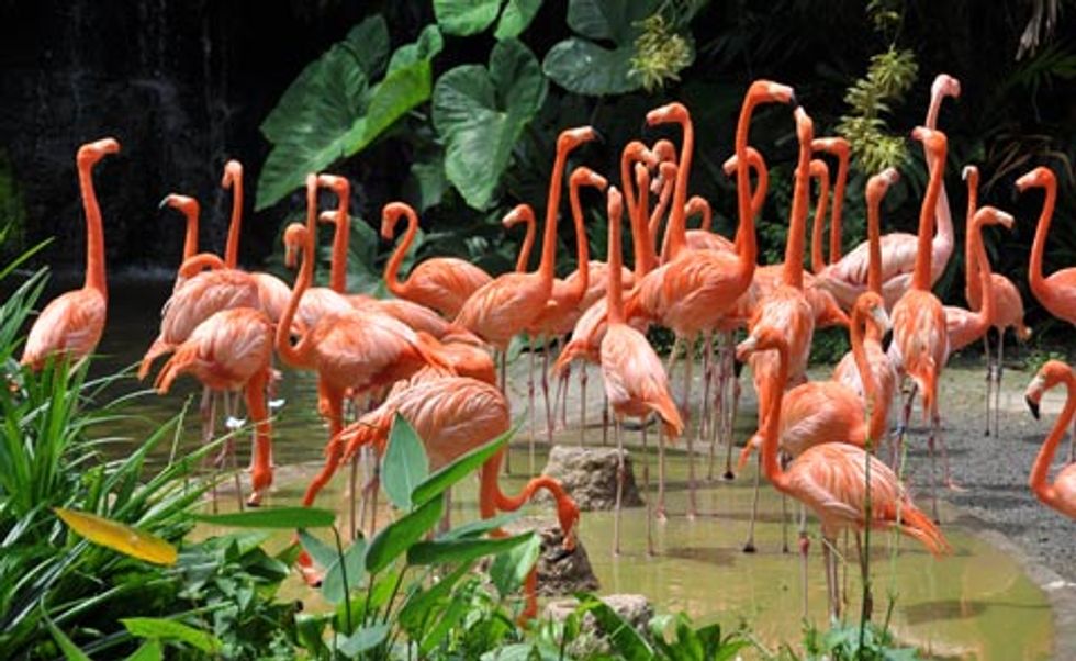 At none other than the Flamingo Hotel & Casino. If you walk to the back and go outside, they have flamingos everywhere. The pool here is also really fun and has great slides.